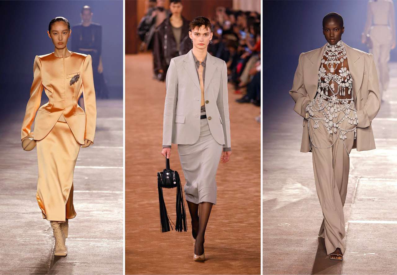 Костюм больше не про «офисные правила». В осенне-зимнем сезоне 2025 он говорит о свободе и игре: тот же жакет, те же брюки или юбка — но жесты другие. Рукава чуть длиннее обычного, борт идет чистой линией, ткань мягко поддается движению. В коллекциях — пояса, которые перехватывают талию поверх пиджака, укороченные жакеты, сатин без крика. В жизни — двойки, которые легко приспосабливаются к вашему дню: от утреннего кофе до вечерней галереи.